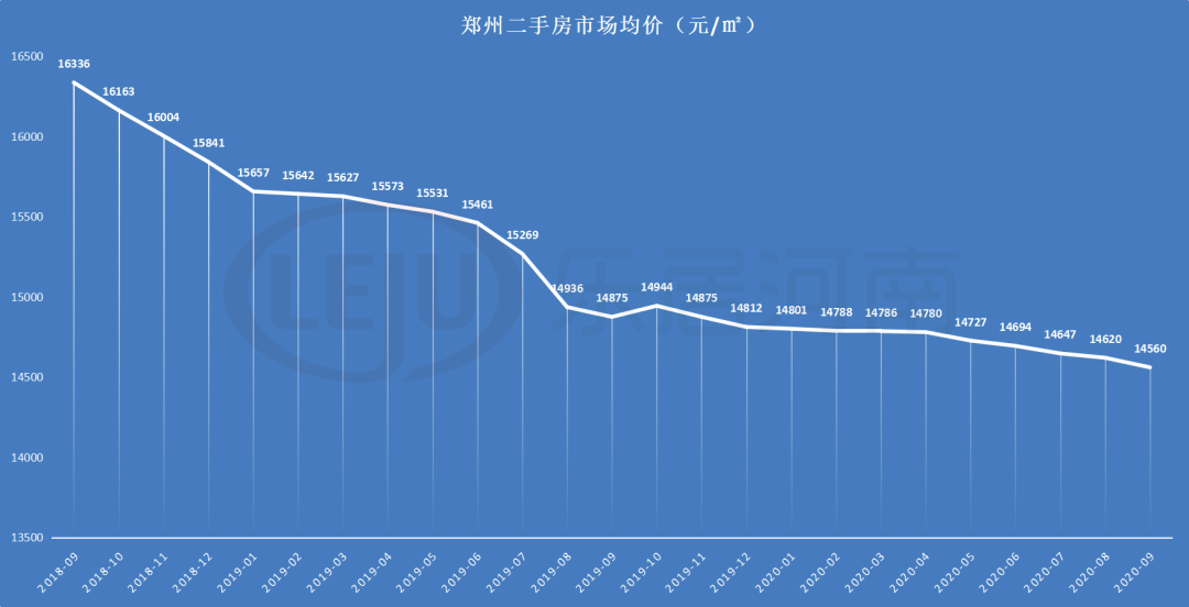 2019年9月郑州二手房价降至14875元/㎡;