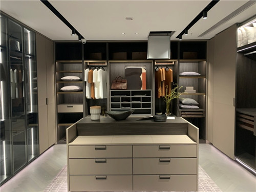 高端调性呈现的,是打破传统的“取与舍”。首先,在产品上,梵华怡居智慧体验馆内的产品都是经过严选而出的,“只选择最能匹配的”。基于此,这个店中陈设的只是欧派、铂尼思和顾家家居产品矩阵中顶级的套系,比如铂尼思,仅有橱柜、餐边柜、电视柜、展示柜、衣柜和衣帽间六款产品。其次,在空间逻辑上更注重展示,而不是传统的“利用率,为此,梵华怡居邀请了国际知名的软装设计师对每一件配饰到灯光,都进行了精心的设计,全方位呈现产品之美。