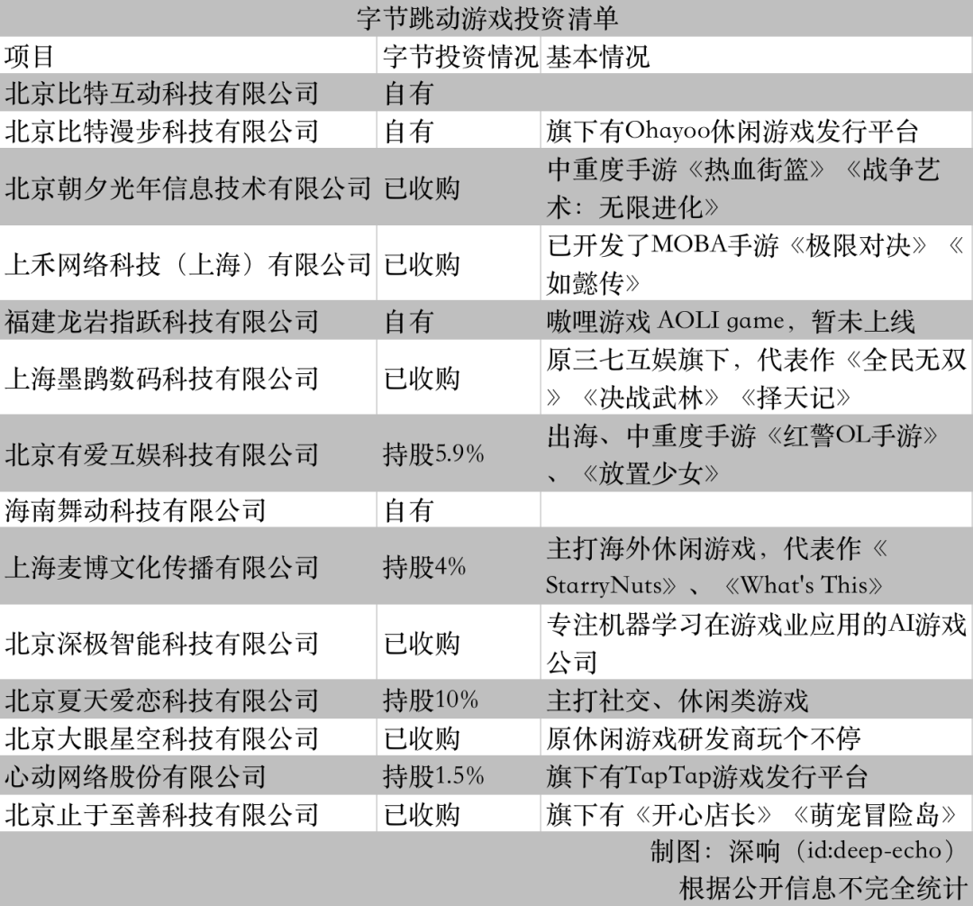 而字节做游戏的另一招——投资——也和腾讯类似。