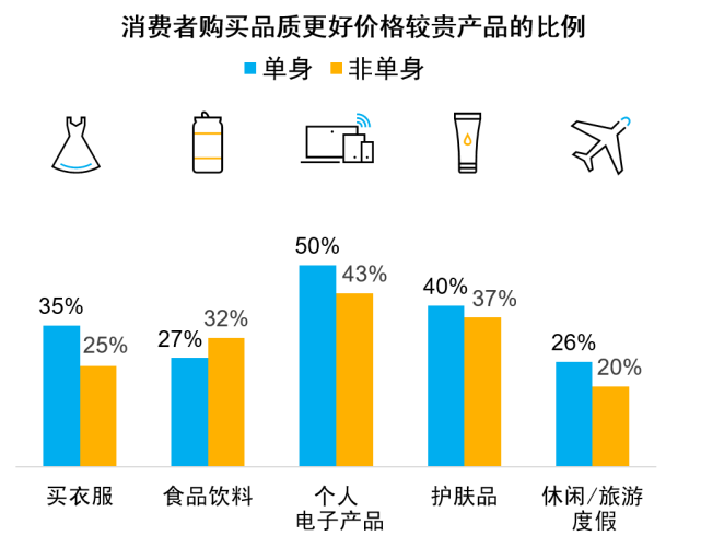 根据尼尔森发布的《中国单身经济报告》指出,单身群体中只有1%左右的人面临着养老及子女教育问题,因此也展现出更加强的消费能力及消费意愿。无论是购买衣服、电子产品、自我投资,消费强度及金额均超越非单身群体。也就是说,单身经济还处于一片蓝海之中。