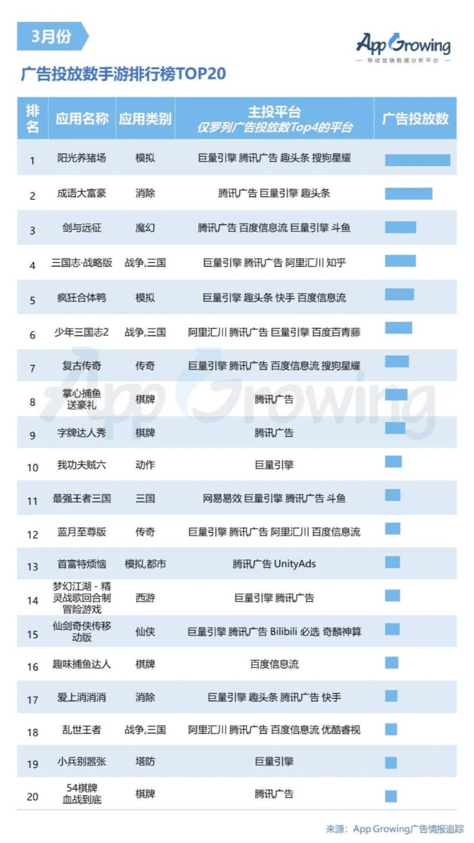 根据AppGrowing分析师的数据,模拟经营游戏《阳光养猪场》今年1、2月买量力度明显增加,占据这两个月的投放榜首,在投放方面以短视频媒体为主,尤其是火山小视频(40.02%)、抖音短视频(29.54%)、西瓜视频(2.48%)。而魔幻题材放置类游戏《剑与远征》今年1月重点投放巨量引擎、百度信息流、腾讯广告三大平台,占比分别达到39.89%、28.82%及15.83%。