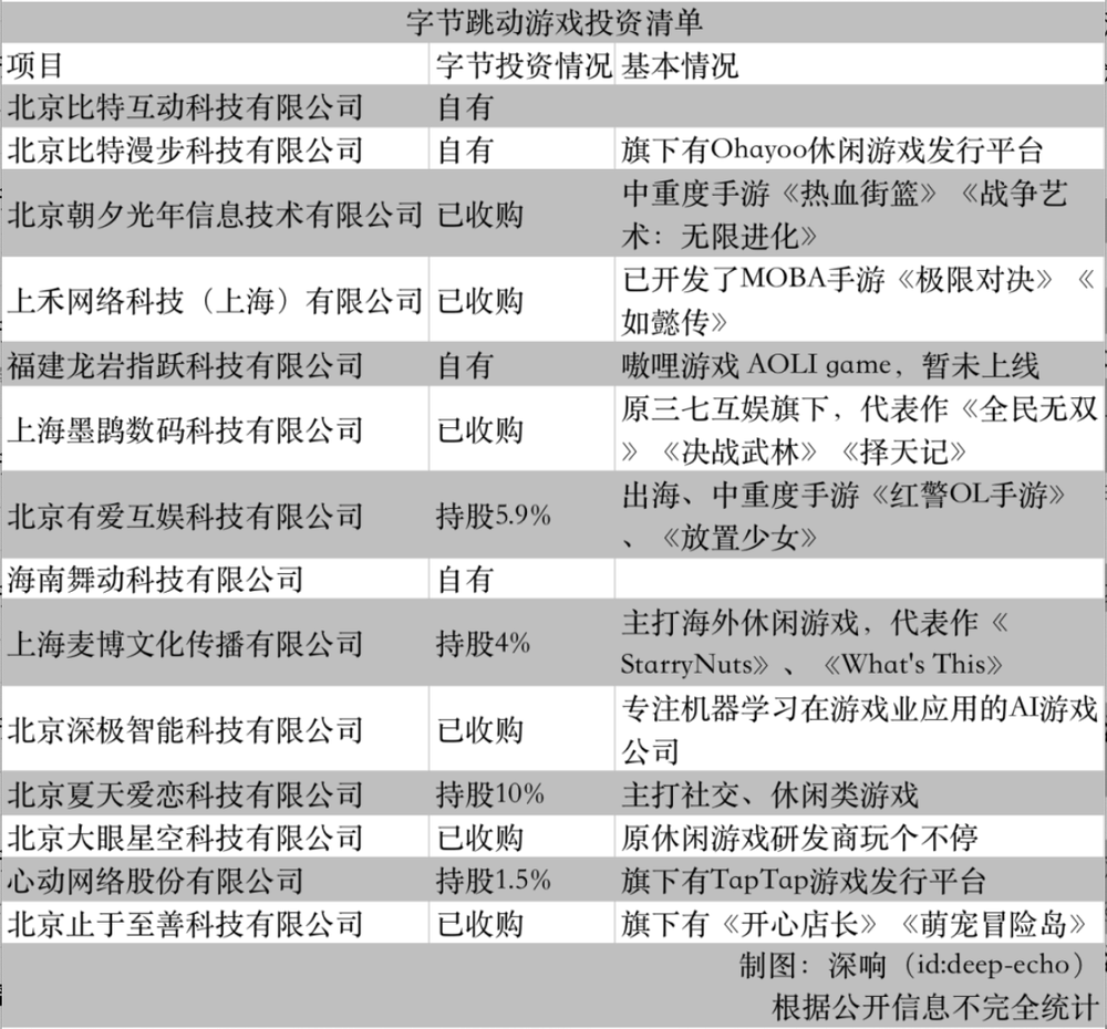 而字节做游戏的另一招——投资——也和腾讯类似。