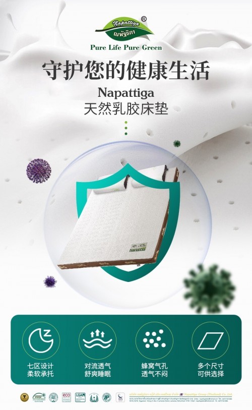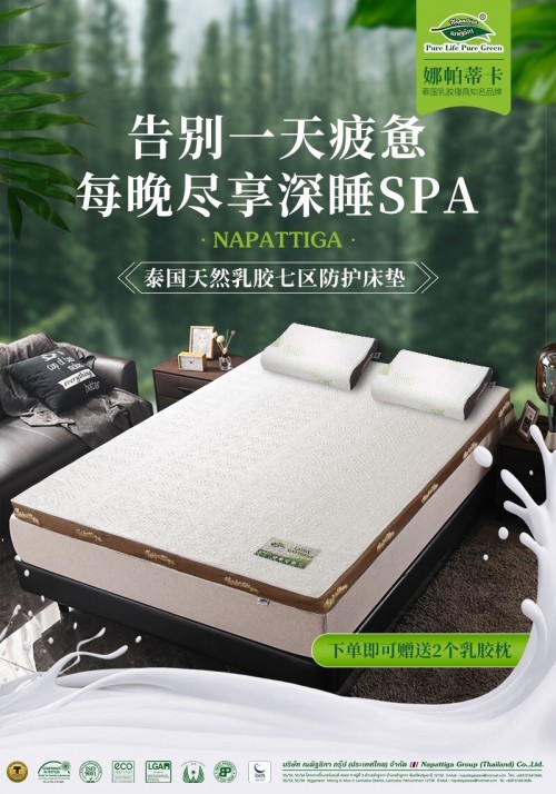 睡眠是健康之本,怎样才能拥有健康的睡眠呢?除了工作、生活、身体、心理等方面的原因外,拥有卫生、舒适、美观、耐用的寝具是获得高质量睡眠的关键所在。而寝具中最重要的莫过于床垫了,一款优质床垫直接作用于我们的睡眠质量。近年来,天然乳胶床垫出现在我们的视野里,并深受广大消费者喜爱。如今,人对于生活品质的追求是很讲究的,在选择家庭用品的时候旺旺选择质量好的,乳胶床垫的出现,以独特的品质赢得市场,舒适柔软,持久耐用,让人们入睡很快,保证了人们的睡眠质量,很受大众消费者信赖。那么,乳胶床垫哪个品牌好?小编认为,乳胶床垫“贵”在乳胶内芯,它在95%的程度上决定了乳胶床垫的品质和价格。而目前,在国内乳胶床垫市场上,知名品牌的产品多有着“海外的内芯”,对于消费者来说,了解这些知名品牌是非常重要的。其中秉承“Pure Life Pure Green 专注绿色健康生活”的核心理念,致力于为全球家庭提供舒适、安全、环保、健康、人性化的家居—Napattiga(娜帕蒂卡)是泰国乳胶行业标杆品牌。