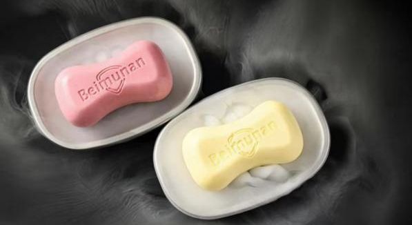 在闽江路上的这家北牧南鲜切羊肉火锅店,信网看到好几桌用餐的顾客都点了这款肥皂蛋糕。蛋糕是黄色和粉色的,外观形状和大小与普通的香皂一样,再加上不锈钢颜色的托盘,如果是放在洗手台旁边,几乎就能“以假乱真”。火锅店的工作人员告诉信网,这款蛋糕算是店里的创新餐品,售价每份28元,每一份有两块蛋糕,“我们也是青岛第一家有肥皂蛋糕的,算是首创了。”