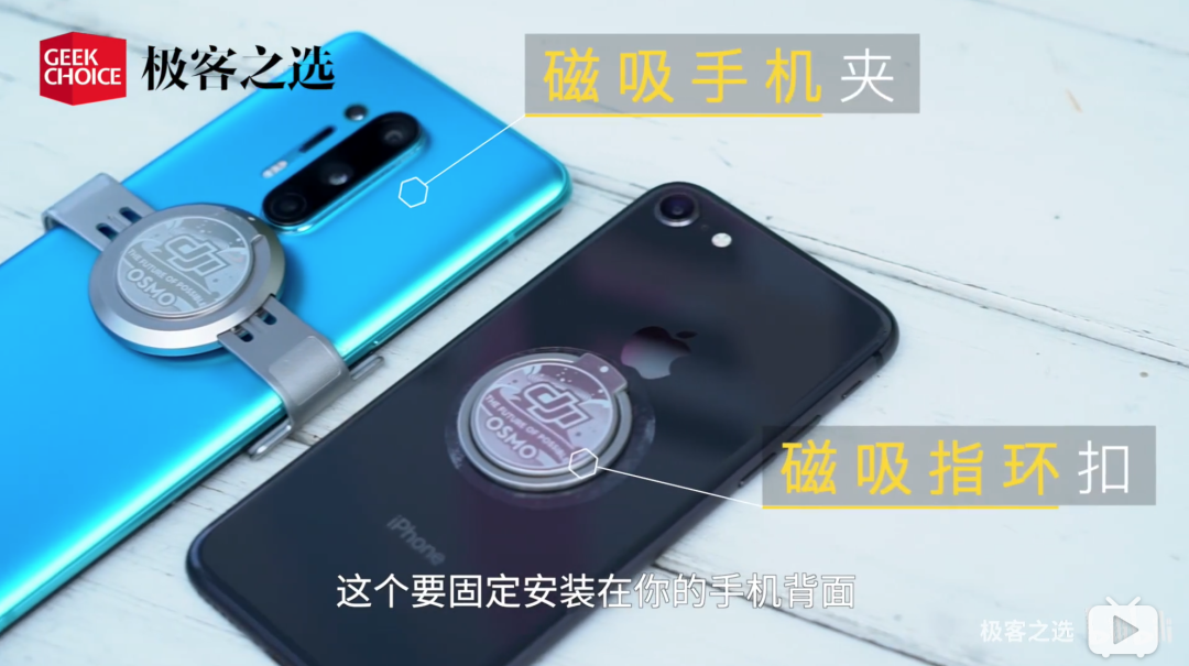 发现了没?MagSafe 的车载支架是不需要在手机上安装金属片的,这就是内置磁体的优势之一。前不久发布的大疆手机云台 4 加入了磁吸快拆设计,不再需要进行复杂的安装和调平工作,其实理念和 MagSafe 某种意义上是相通的。但它的实现方式是在手机上装一个金属的指环支架(或者安装金属夹),假如 iPhone 本身就带磁体,那不是方便很多?