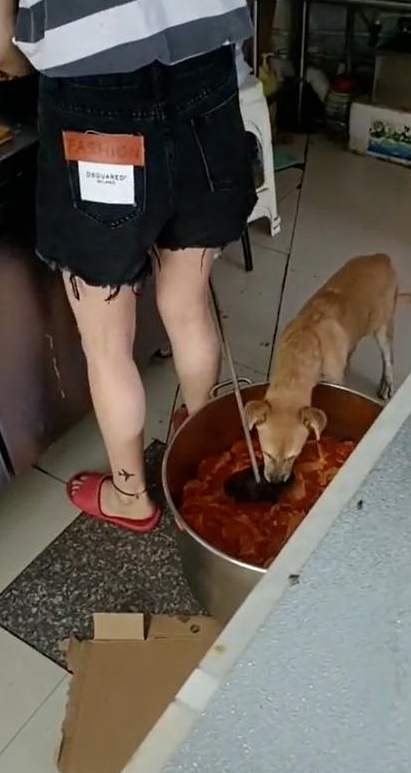 7月5日,杭州一外卖小哥拍下狗在盛饭桶里进食的视频后,引发网友关注。
