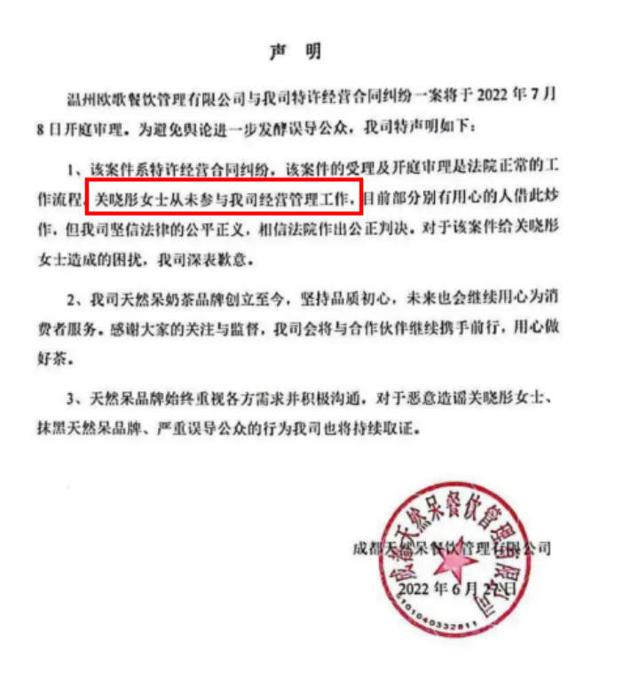 天然呆官方宣称,关晓彤只是授权给“天然呆”个人肖像使用权,因此无需对各类加盟事件负责。然而,网友却扒出关晓彤其父持有天然呆公司35%的股权,证明关晓彤与其团队和天然呆存在着千丝万缕的资本关系。