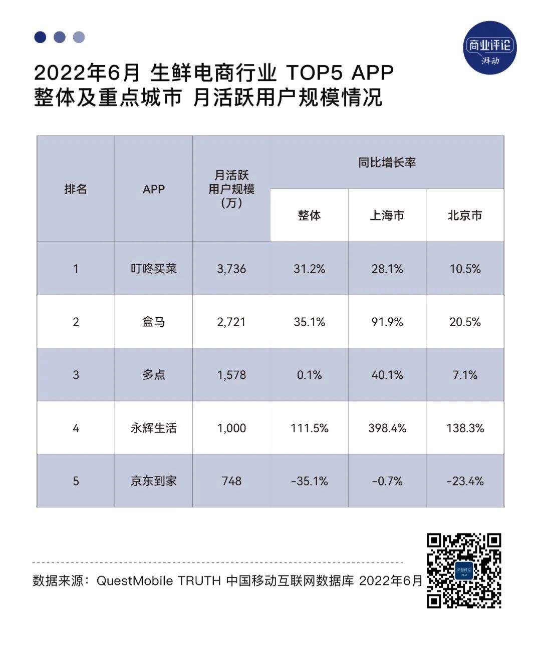 根据QuestMobile数据,截至2022年6月,盒马鲜生以月活跃用户(MAU)2721万,位列国内生鲜电商行业APP第二位,自此盒马APP的流量同比增长近20%。夜市衍生出了新形态——盒马把啤酒吧、烧烤摊搬进店,线上线下都能逛。