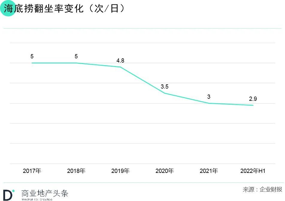 远离核心商圈,一方面让海底捞获得了低至4%的租金率,远低于行业10~15%的水平;另一方面,凭借自身品牌效应,能吸纳足够多的客流,而维持低密度同城门店,也有利于形成自然排队效应。