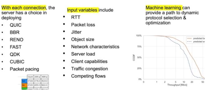 为了优化底层网络和协议,直播电商需要考虑不同的TCP拥塞协议,如BBR、RENO等。目前,多数直播平台均是通过检测RTT(往返时延)、可用带宽或者丢包率大小来判断网络拥塞状态。但这种方式存在一个核心问题,那就是拥塞判断不准确,基于丢包和延时的拥塞控制算法无法准确判断拥塞。而用户的体验和性能又有不同的指标,如RTT、丢包、抖动等,因此并不是某一个协议就能够完全满足所有的需求。Akamai建议直播电商采用基于机器学习的动态选择底层协议的承载平台,来适应业务需求对底层网络的要求。