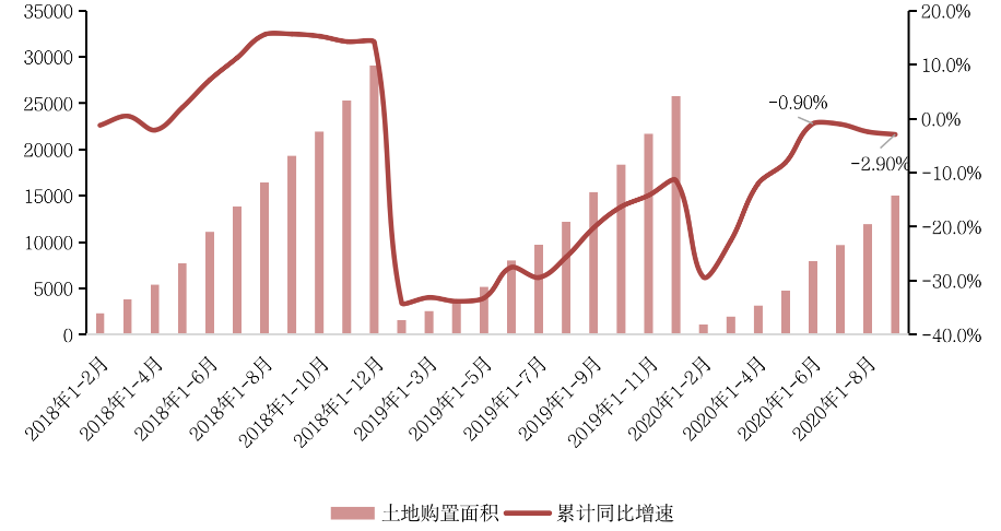 “三条红线”的影响同样体现在房企土地购置端。据国家统计局数据显示:1-9月份,房地产开发企业土地购置面积15011万平方米,同比下降2.9%,降幅比1-8月份扩大0.5个百分点相较7月即将转增的跌幅已然扩大2个百分点。受资金面监管收紧影响,房企对于土地购置更加审慎,土地购置面积规模逐月降低,但房企对核心热点地块依旧迫切争夺,1-9月土地成交价款9316亿元,增长13.8%,增速提高2.6个百分点。