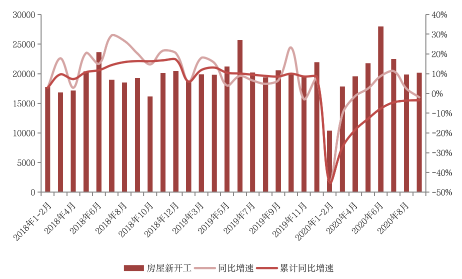 一方面是房企当前迫切需要资金节流。另一方面由于疫情所致上半年全国土地购置面积较小,因此下半年可供开工项目基数也少于往年同期。