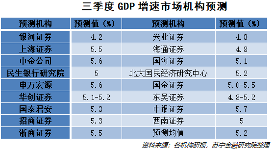 关于三季度GDP增速,有人认为实际值低于市场预期。但我们认为,市场预测存在较大分歧,但还是有一部分市场机构做出了比较准确的5%左右的预测,实际值与其中的很多机构的预测是相符的。