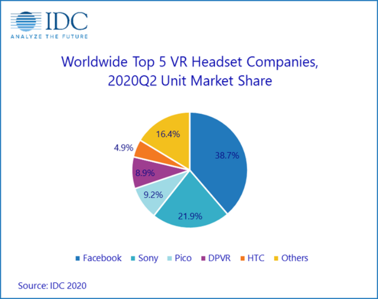 全球前五VR头显设备出货量企业的市场份额