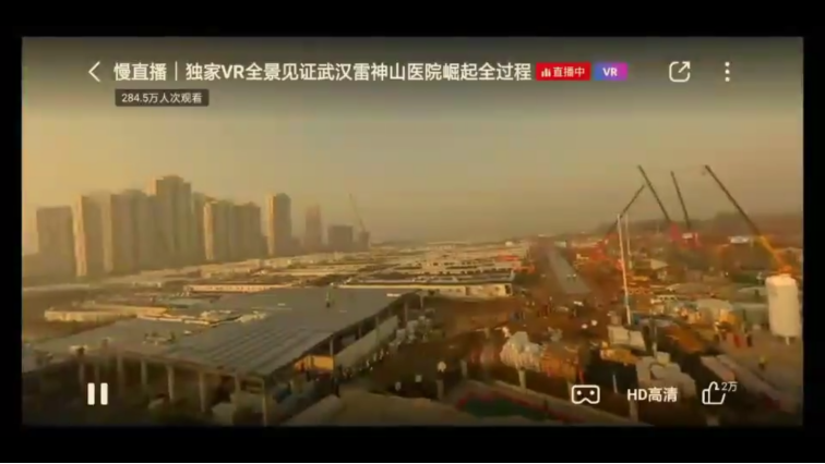 火神山VR实时画面24小时不间断推流,超8000万网友共同见证“中国速度”。