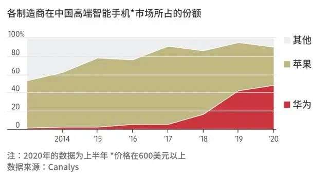 其他厂商如小米、三星和OPPO几家大厂之间份额则无大的差距,市占略有提升,但差距仍大。《华尔街日报》援引Canalys分析师的话称:在中国的高端机市场,只有两家厂商:苹果和华为。
