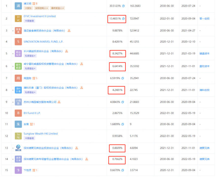 值得一提的是,自2020年起至今年5月底,珍味小梅园已完成了六轮融资。参与的机构不乏创新工场、虢盛资本、星陀资本、清科资本等知名机构,可谓资本界的“宠儿”。
