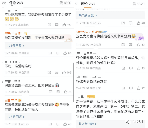 我们在微博上搜索“预制菜”,最先看到某家知名媒体官微的消息,下方评论来看,公众对预制菜产品明显缺乏信任度。