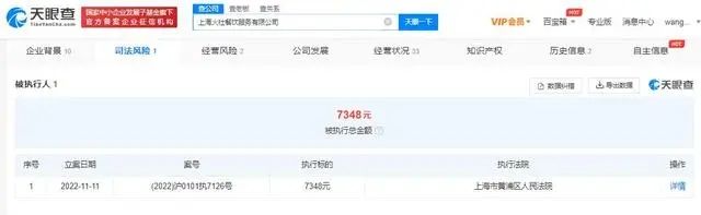 天眼查App显示,近日,上海火社餐饮服务有限公司新增一则被执行人信息,执行标的7348元,执行法院为上海市黄浦区人民法院。