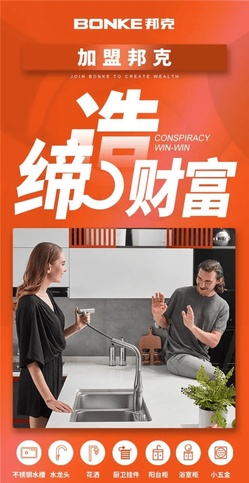 邦克厨卫2021年度招商加盟工作已经在全国全面铺开,诚邀有志于从事厨卫事业,以邦克品牌赋能实现财富梦想的朋友,可微信关注“邦克厨卫”,诚邀您共享美好蓝海!