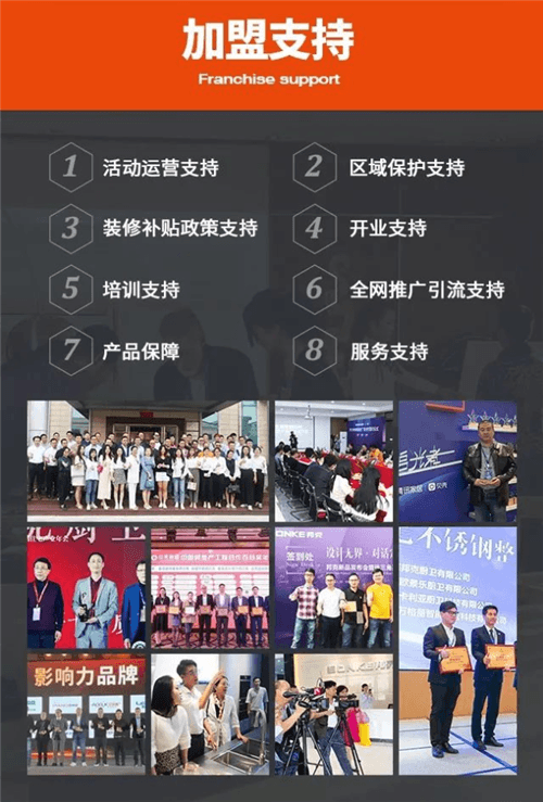 邦克不断满足消费群体80、90后的个性化需求,扩大产品线,丰富产品系列涵盖水槽、水龙头、阳台柜、浴室柜、淋浴花洒、五金配件等产品,最大程度满足消费者高品质生活需求,能真正做到一站式购齐;为经销商带来利润最大化的效益,为经销商破格定制,升级帮扶政策,整店输出,全方位保姆式开店帮扶政策,从开业到盈利,为经销商保驾护航。