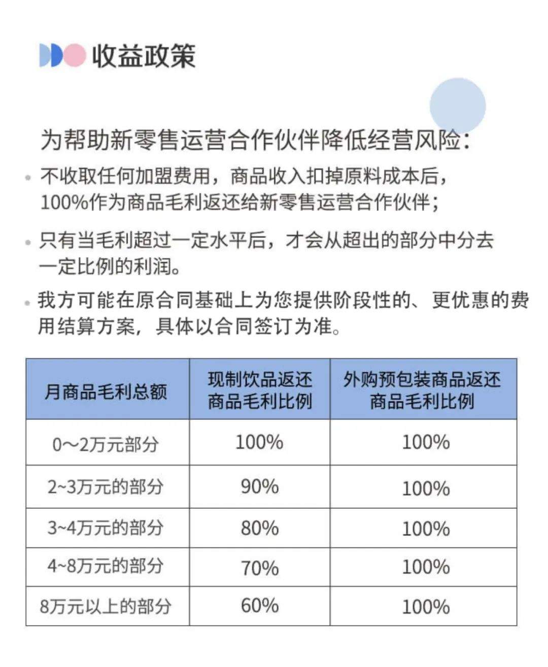 有瑞幸咖啡加盟商看了这份招商手册后表示,库迪咖啡加盟条款中比较吸引人的是“减免10万服务费”。至于所谓的日销量,该加盟商称,与门店选址、所在地区等都有关系,还需要根据实际情况判断。
