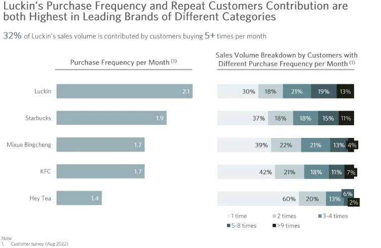 瑞幸商品的购买频率及客户复购率都具备领先优势