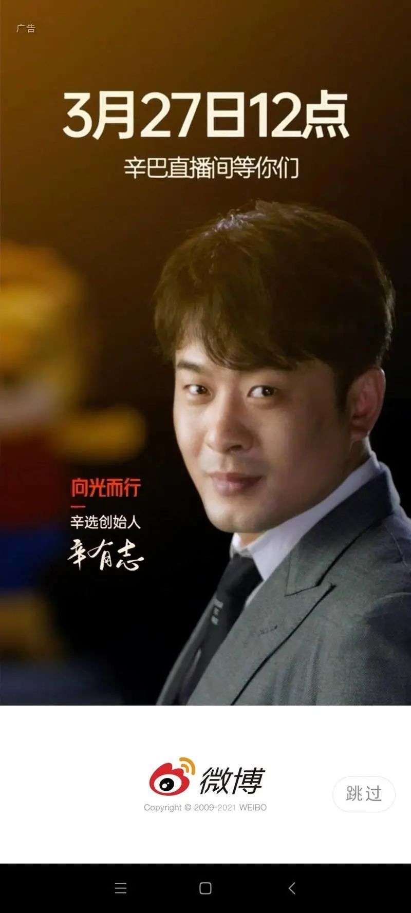 辛巴的开屏广告。图片来自于微博截图