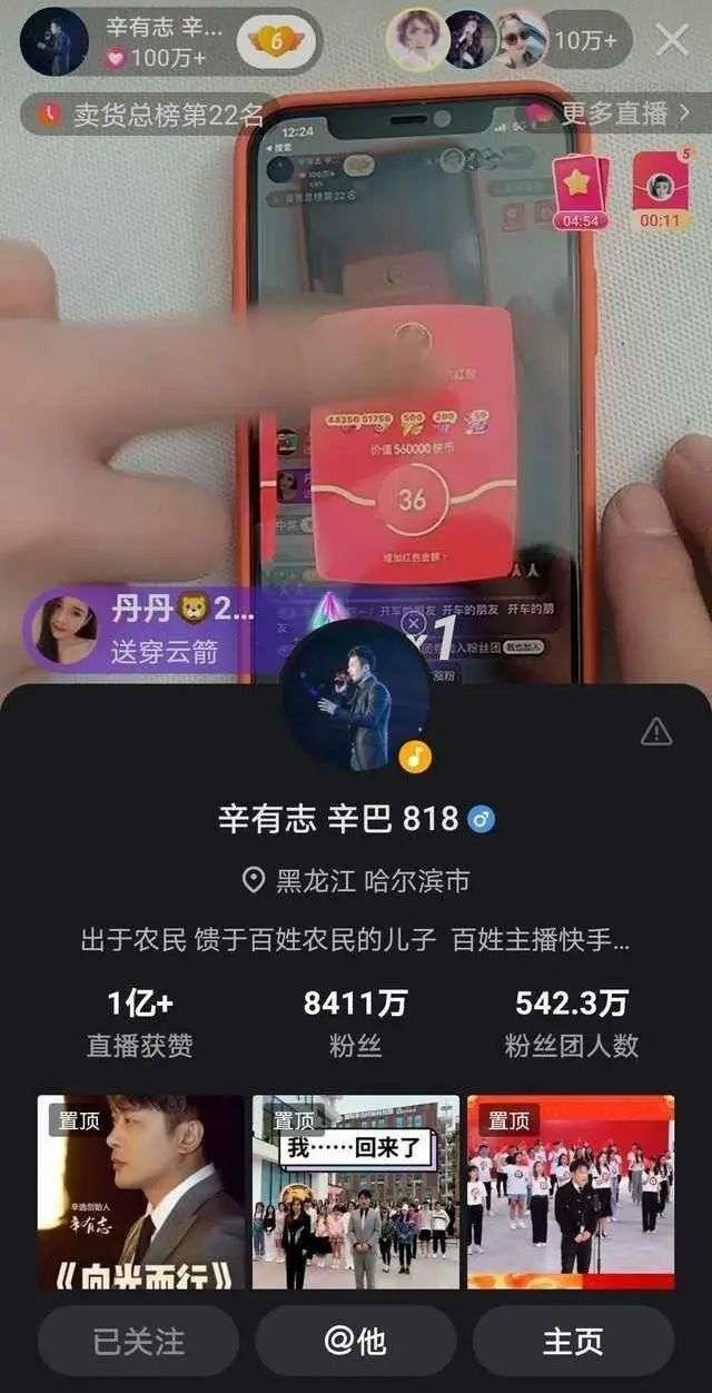 晚上11点30分,屏幕上的数字终于突破了20亿元,打破了他在2020年11月1日创造的14.54亿个人GMV最高纪录。伴随着不断上涨的销售额,辛巴的粉丝量也上涨了三四百万,一天就涨出了一个快手腰部主播的粉丝量,粉丝团也从378万涨到了542万。