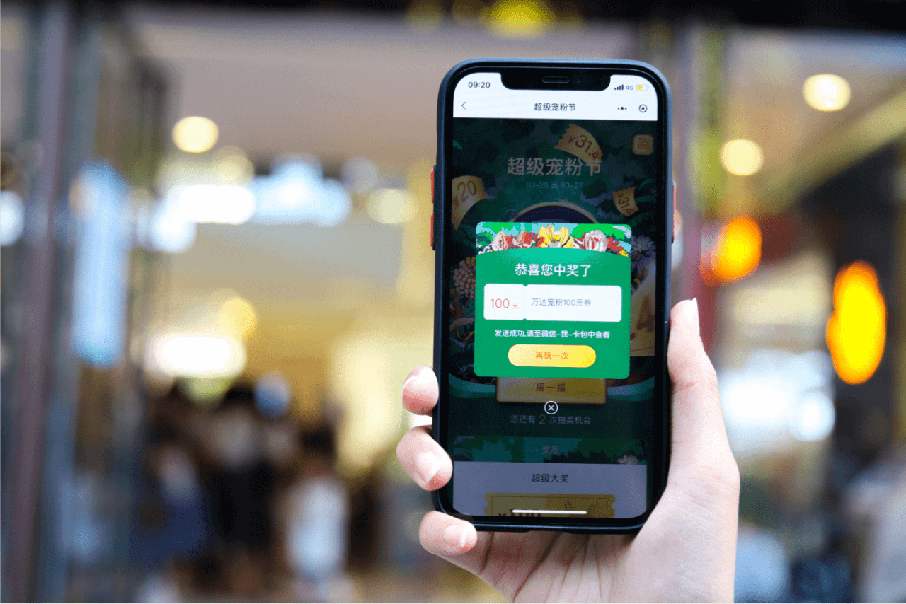 在小程序、支付与会员外,丙晟科技在助力万达广场数字化的进程中,特别是在2020年复工复产阶段发放消费券的过程中,积累了“线下造节”的基础能力,如发券、停车与积分等技术经验,做“宠粉节”自然就得心应手。