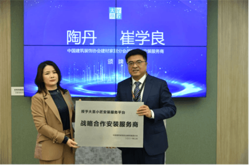 中国建筑装饰协会建材家居分会秘书长陶丹女士授予大圣小匠安装服务平台战略合作安装服务商