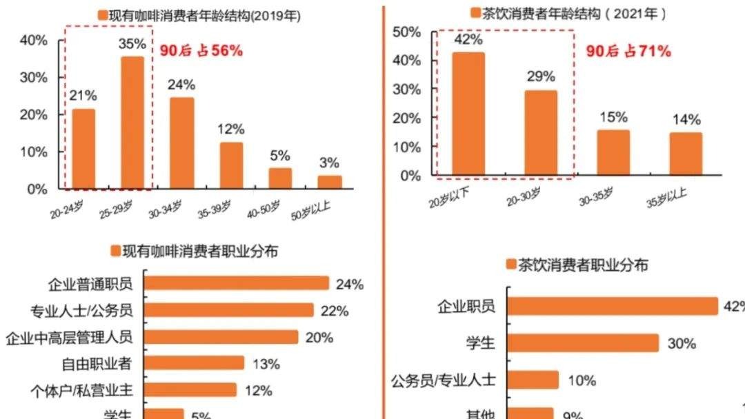 平安证券在今年7月发布的《新消费研究之咖啡系列报告》显示,咖啡和茶饮的目标群体存在重叠,90后和企业职员均为两类现制饮品的消费主力。