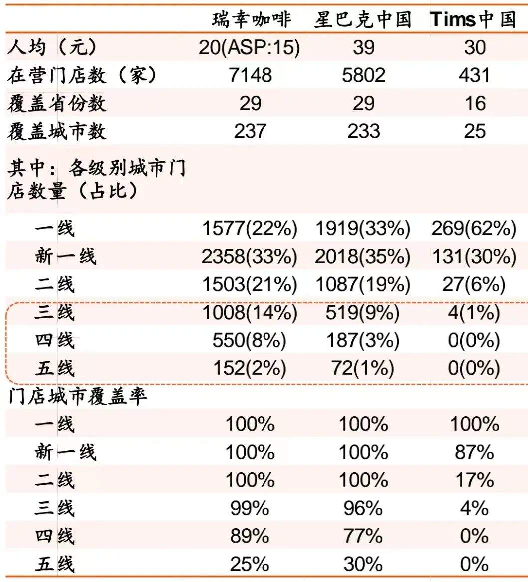 反观瑞幸,据平安证券测算,目前瑞幸在四线城市的覆盖率为89%,五线城市覆盖率为25%。