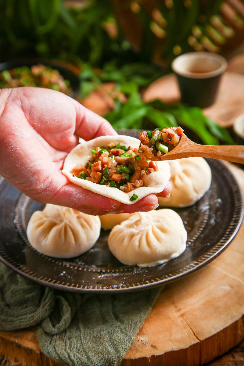 既能兜住一汪清澈的汤,还能做到薄而不破,考验的则是包子皮的制作功力,不同于小笼肉包所追求的“暄、白、软”的面皮儿,汤包对面皮儿的要求一般是“薄、韧、透”,最好是既能透过面皮隐约看到肉馅,筷子夹起来的时候又不会破。法华汤包馆的汤包面皮用死面和发面混合制作,既保证了蓬松的口感,又有一定韧性,“半发半不发,薄厚适度”。
