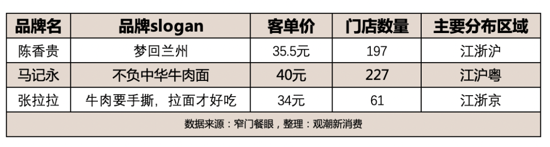 可以看到,新兴兰州拉面品牌克服了传统夫妻店的弊端,纷纷布局一线城市,一线城市最高占有率能达到79.81%。选址也集中在百货商场和写字楼,针对的客群是18—35岁年龄段的家庭和白领型人群。