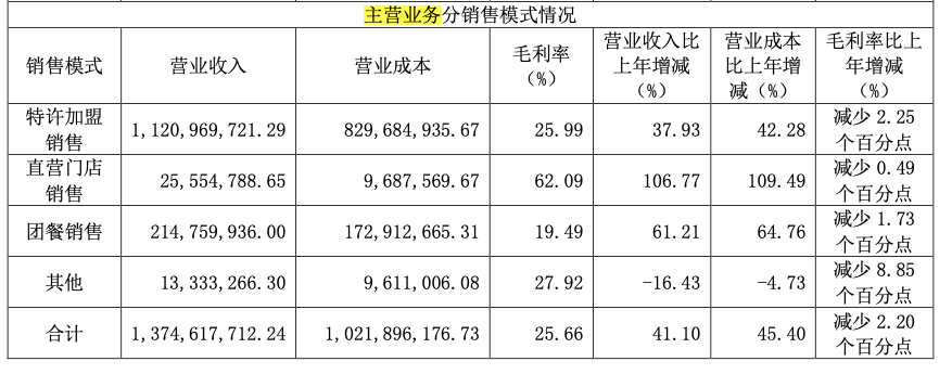 从财报看到,特许加盟店为巴比食品带来了11.21亿的收入。也就是说,上述提到的食品类收入,均为巴比食品向加盟商售出所带来的。