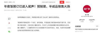 近期,各路食品商家纷纷推出预制菜系列年夜饭。