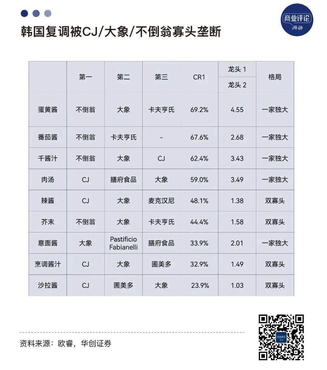 韩国复调品牌要么一家独大,要么双寡头垄断,集中度非常高,而且本土企业优势突出。