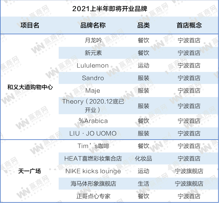 首进品牌数量全城No.1,业态涵盖面宁波最全