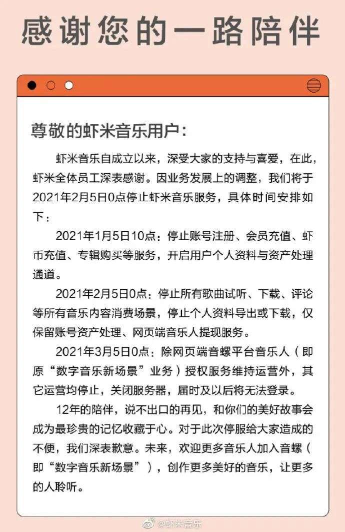 最终还是走向了关停服务的虾米,官方将业务失败的原因归结为“我们在发展过程中曾错失了一些关键机会。在音乐版权内容的获取上,没能很好地满足用户多元化的音乐需求,这也是我们最大的遗憾。”