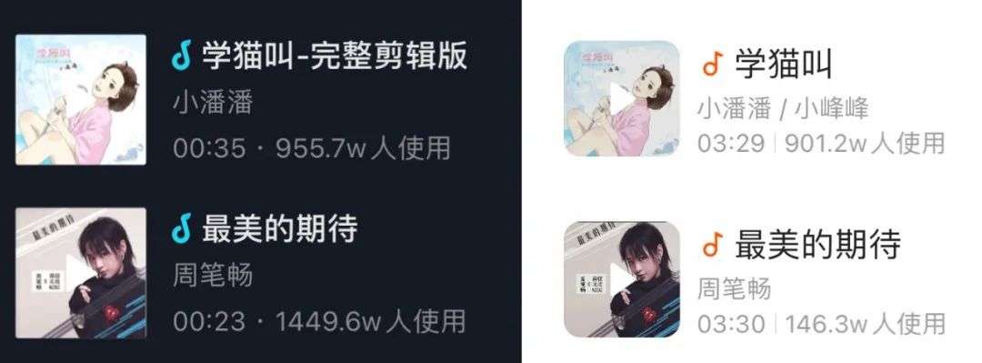 《学猫叫》《最美的期待》在抖音和快手被上百万人使用