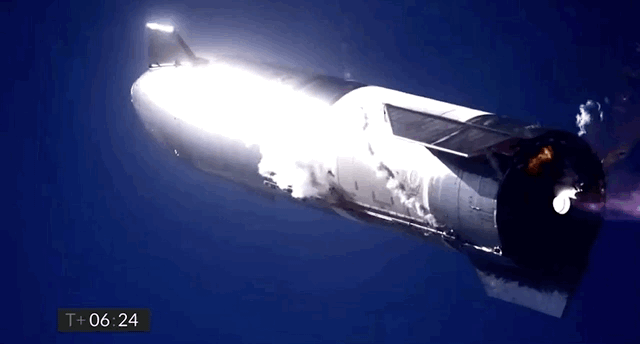 火箭的点火、上升过程一切顺利,上升高度10公里左右,然后按照之前几架星舰原型机演练过的,依次关闭发动机,在高空完成悬停、自由落体(包括利用机翼进行姿态控制)过程。