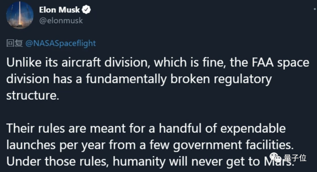 马斯克此前一直抨击美国航天管理部门的低效和官僚主义阻碍了太空探索进程。