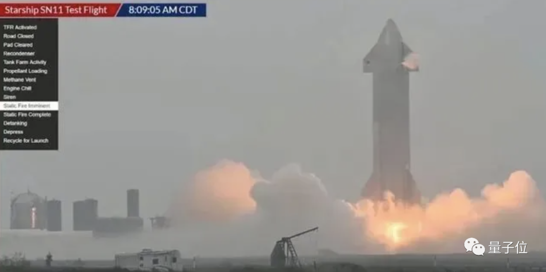 SN11的整个发射过程,走的是“朦胧派”路线,顶着可见度极低的浓雾天气点火上天。