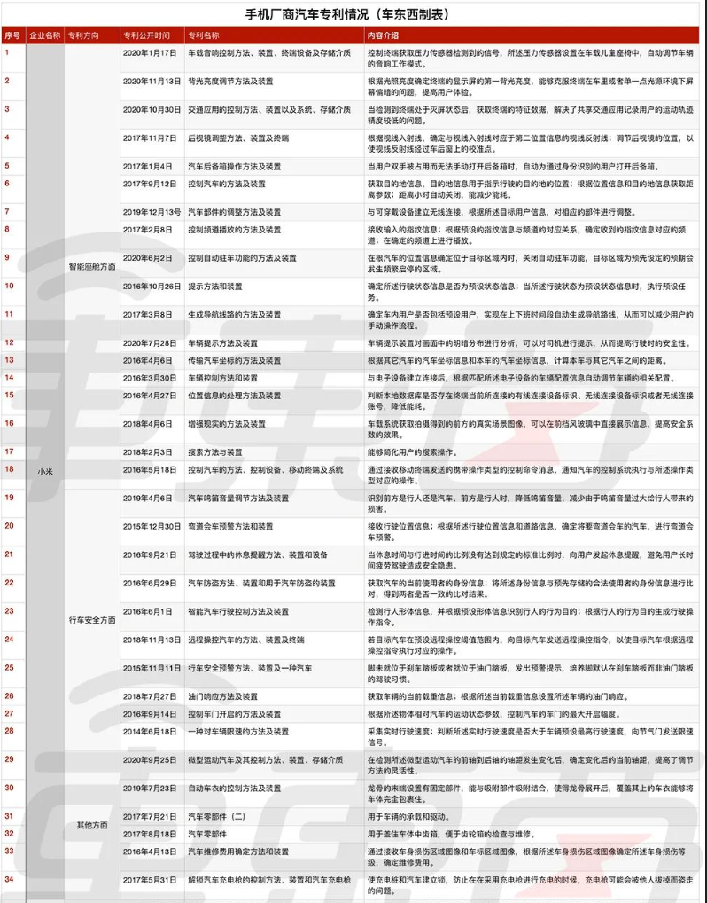 小米汽车相关专利,图源“车东西”
