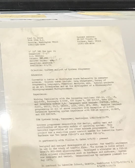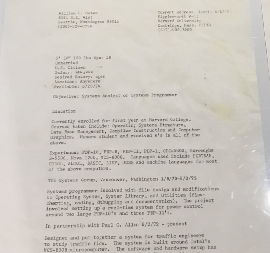 说起「复古」求职信,微软创始人比尔盖茨和保罗艾伦写于1974年的两份简历,也颇具内容。