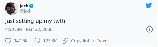 例如,美国社交媒体平台推特首席执行官(CEO)杰克·多尔西正出售自己2006年发布的第一条推文,叫价已到250万美元+