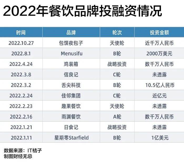但疫情之后,万事万物回归常态,速生速朽的互联网思维与网红打法无法改变这个传统行业“适者生存”的本质。据IT桔子统计,年初至今,餐饮行业总计发生10起投资事件。百福控股CEO王小龙曾表示:“很多投资人开始不看餐饮了,大牌的投资机构都处在观望的状态。”