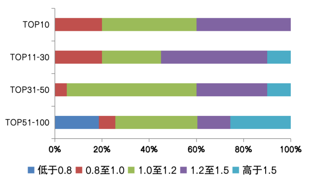 TOP30房企中,虽有20%的企业单月业绩较去年平均水平下降,但降幅依然低于20%,考虑到其体量,整体业绩仍属乐观。TOP51-100梯队房企中,超过26%的企业业绩增幅在50%以上,另有近二成的企业业绩降幅超过20%,表现出较为明显的两极分化特征。