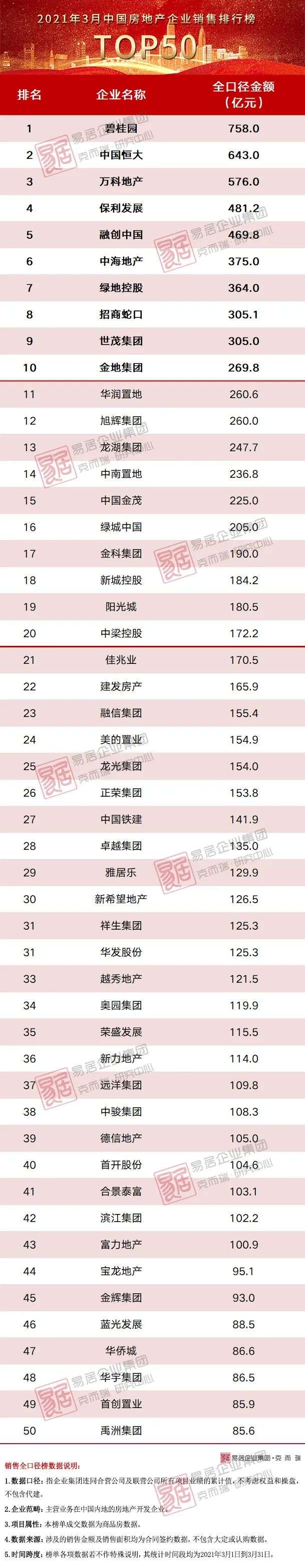 图:2021年1-3月百强房企累计业绩表现(亿元)及变动